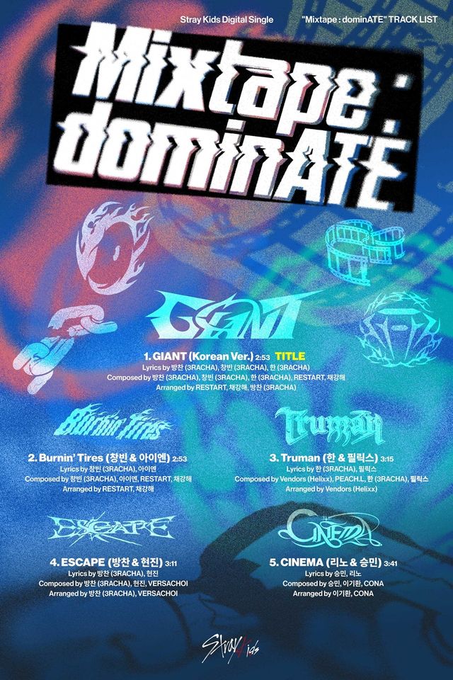 새 싱글에는 타이틀곡 'GIANT (Korean Ver.)'(자이언트 (한국어 버전))과 신선한 멤버 조합의 유닛곡 'Burnin’ Tires (창빈 & 아이엔)'(버닝 타이어스 (창빈 & 아이엔)), 'Truman (한 & 필릭스)'(트루먼 (한 & 필릭스)), 'ESCAPE (방찬 & 현진)'(이스케이프 (방찬 & 현진)), 'CINEMA (리노 & 승민)'(시네마 (리노 & 승민)) 총 다섯 곡이 실린다.