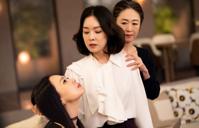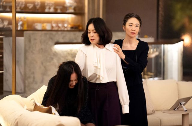 사진 속 차덕희-차국희 자매는 공비서(서경화 분)와 함께 대산家에 모여 있다. 이들을 둘러싼 공기에 긴장감이 감도는 가운데 차덕희가 동생 차국희의 머리채를 강하게 잡아채고 있다. 어떤 상황에서도 고고한 척 고상함을 유지하는 평소의 차덕희와 180도 다른 모습이라 시선을 강탈한다. 갑작스러운 상황에 당황한 듯 울상이 된 차국희의 반응도 인상적이다. 여기에 차덕희의 어깨를 감싸 쥔 채 마치 차덕희를 컨트롤하려는 듯 행동하는 공비서의 존재도 의뭉스러움을 자아낸다.