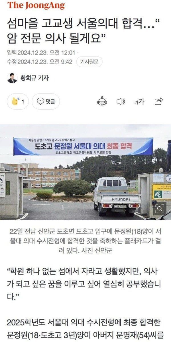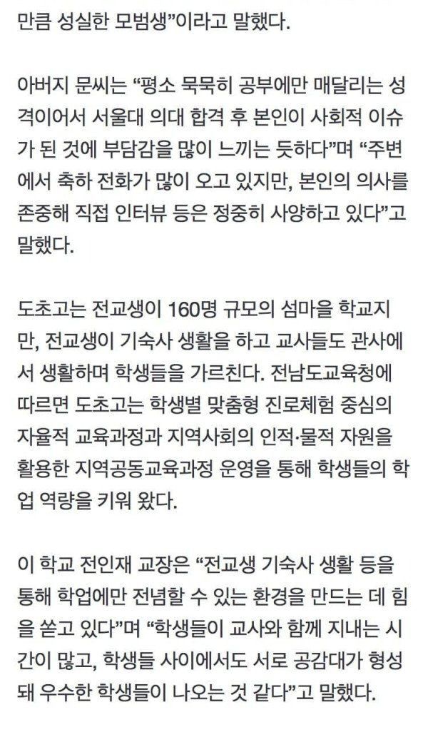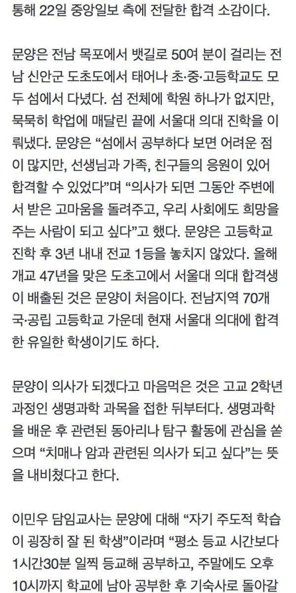 육지와 연결된 다리 하나 없는 섬마을 고등학교에서 서울대 의대 합격 ㄷㄷ