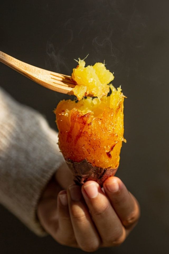 ▲ 따뜻한 고구마에 버터를 살짝 올리면 풍미가 깊어진다.
