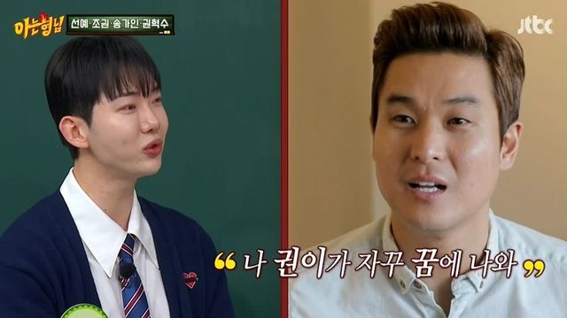 결혼식 사회를 부탁받았던 조권은 “여러 번 거절했다. 24살이었는데, 사회를 해본 적도 없고 한창 ‘깝권’으로 활동할 때라 사람들이 많이 기대할 것 같았다. 그리고 하객이 진짜 많이 왔다”며 부담스러웠다고 고백했다. 서장훈이 “사회 봐주기 싫었던 거 아니냐. 친한 친구 뺏기는 거 같아서”라고 물었고, 조권은 “솔직히 그것도 있었다. 오랫동안 시간을 보낸 사람들은 펑펑 울었다. 입장하는데 그냥 눈물이 나더라”고 당시를 떠올렸다.