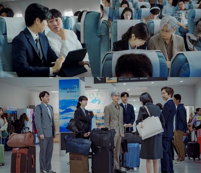 이와 함께 공개된 사진 속에는 윤주노와 팀원들이 일본으로 향하는 비행기에 올라 궁금증을 자아낸다. 비행기 안에서도 업무에 집중하느라 바쁜 윤주노와 곽민정의 모습이 익숙한 한편 첫 해외 출장에 경직된 최진수, 그런 그에게 여유롭게 조언을 건네는 오순영까지 첫 출장의 생생한 풍경이 담겨있다.