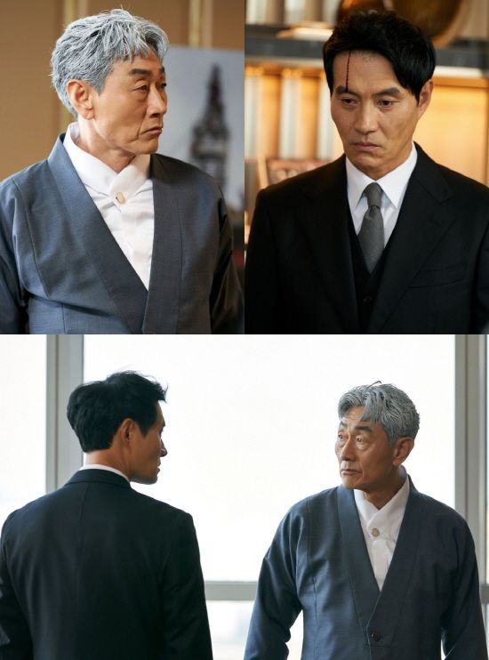 그러나 마지막 사진에서는 고개를 빳빳이 든 허일도와 그런 허일도를 가소롭다는 듯 바라보는 염장선의 모습이 담겨 있어 흥미를 유발한다. 찰나를 포착한 스틸임에도 두 인물의 관계성과 심리적 변화가 느껴진다.