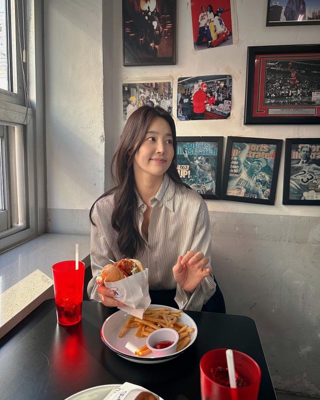 21일 한지혜는 햄버거, 콜라, 하트 이모지와 함께 여러 장의 사진을 올렸다.
