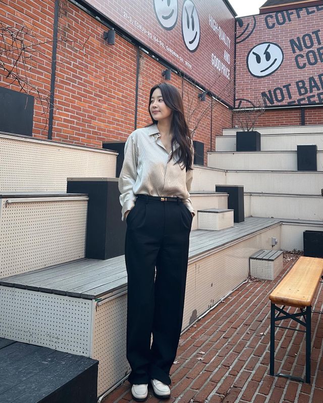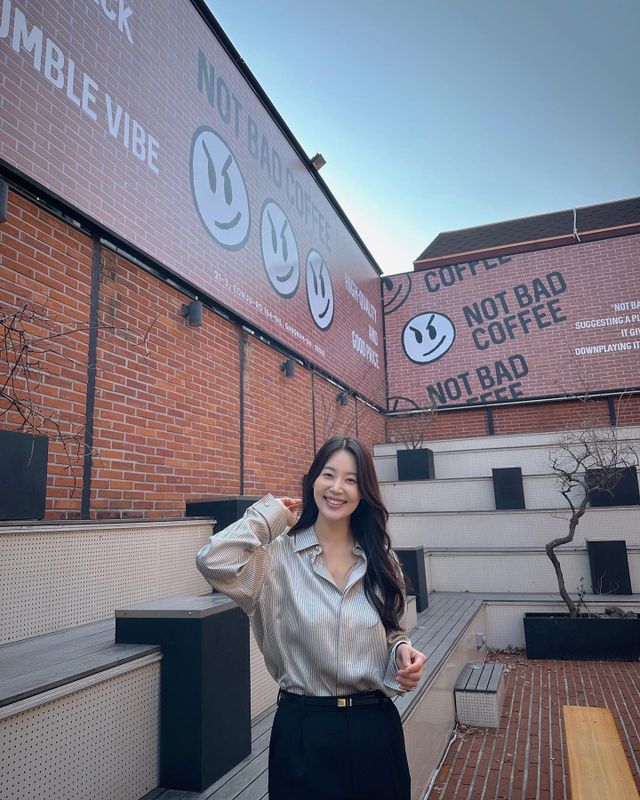 사진 속 한지혜는 카페에서 다양한 포즈를 취하고 있다.