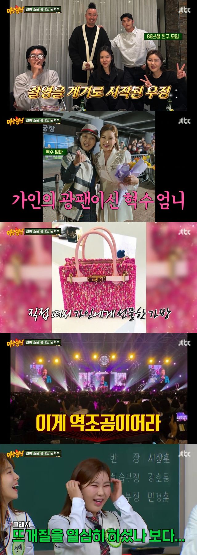 서장훈이 "모르는 사인데 어떻게 찾아갔냐"고 묻자 권혁수는 "내 친구 중에 송가인의 지인이 있었다"고 답했고, 송가인은 "동갑이라고 하니 촬영 전에 친해져야겠다고 생각했다"라고 밝혔다.