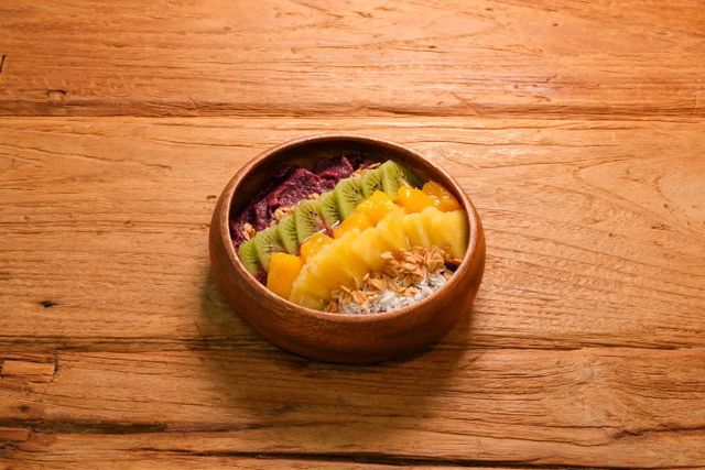 '트로피컬 무드(Tropical Mood)'는 망고, 파인애플, 키위 등 열대과일의 상큼한 맛과 견과류의 고소함이 어우러져 이국적이면서 가벼운 풍미를 즐길 수 있는 아사이볼이다.