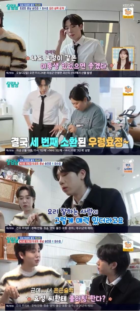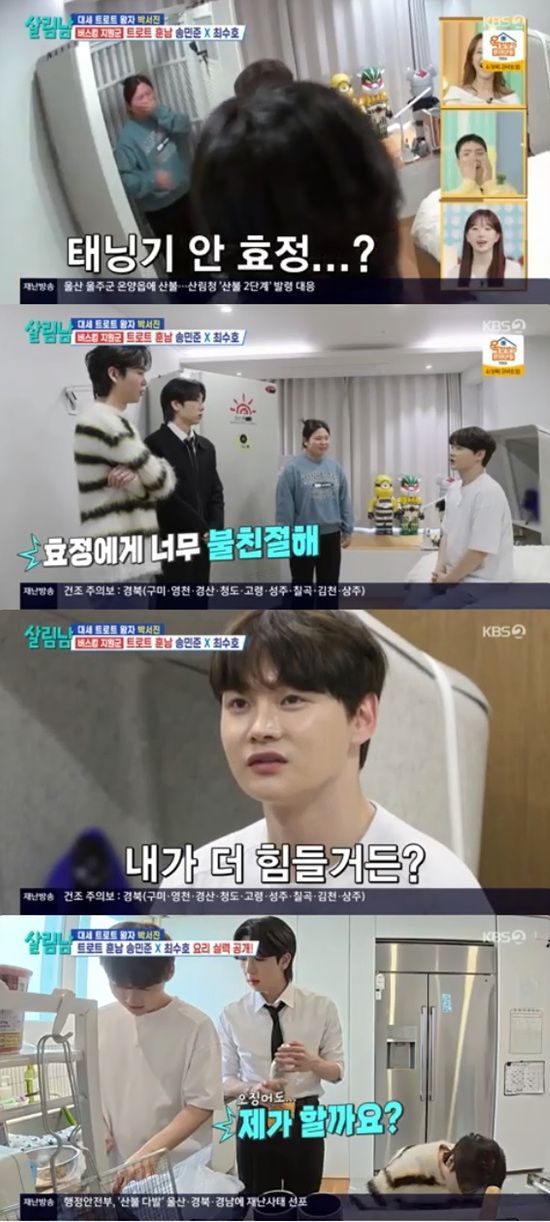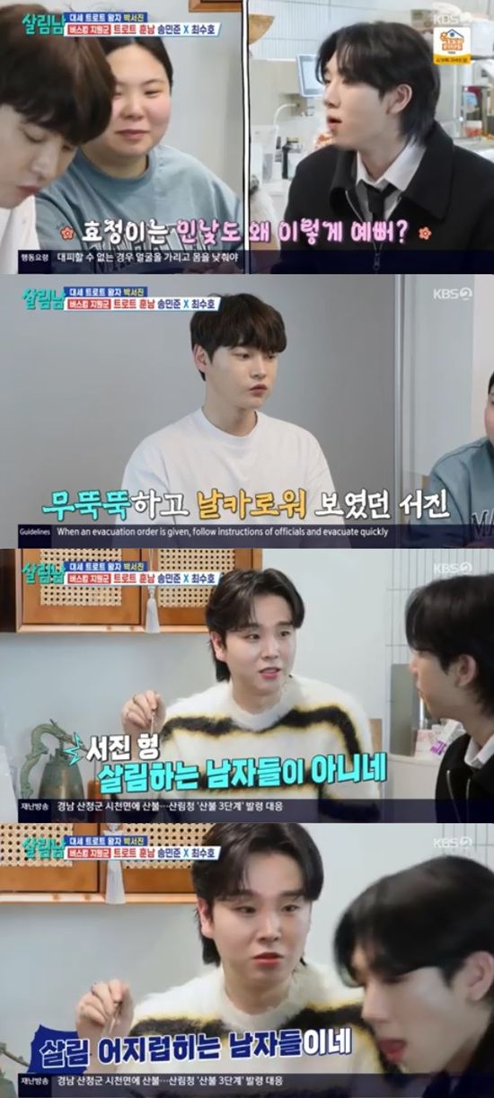 22일 방송된 KBS 2TV '살림하는 남자들 시즌2'에서는 박서진이 최수호, 송민준에게 위기감을 느끼는 모습이 전파를 탔다.