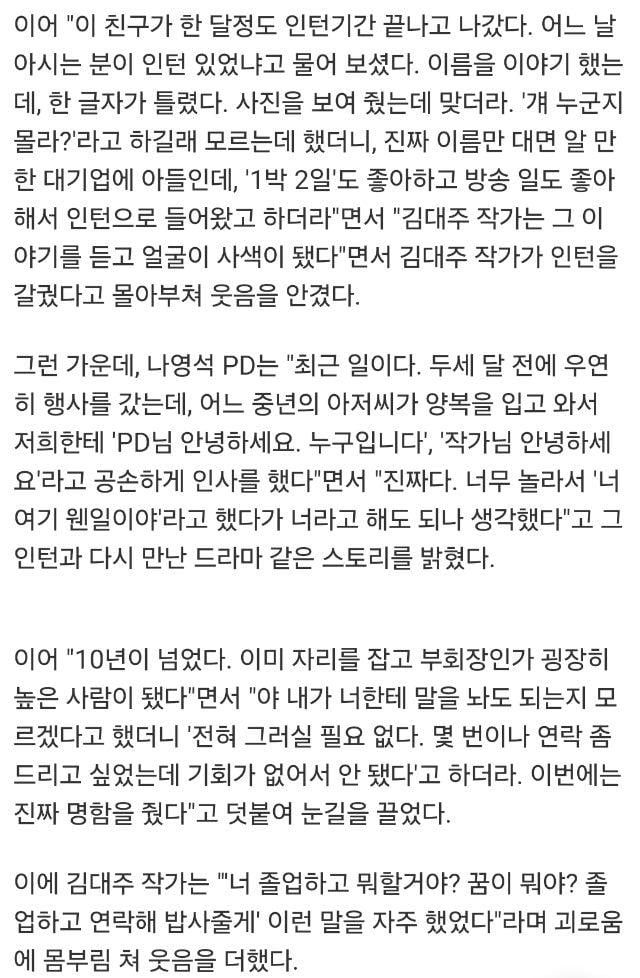 느그 아부지 뭐하시노? 한화 김승연인데요.. ㄷㄷㄷㄷㄷ 대주 작가가 인턴 엄청 갈궜다는데...