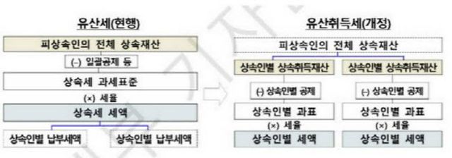 이번 상속세 개편의 핵심은 상속인이 받은 만큼 세금을 내도록 개편해 세 부담의 형평을 개선한다는 데 있다. 물려받은 유산이 같다면 세금도 같아야 하지만, 현 제도는 각 상속인이 받은 유산에 비해 높은 세율을 적용해 형평에 맞지 않는다는 지적을 반영한 것이다.