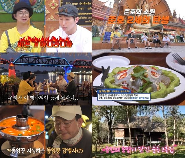 유쾌하게 ‘왓 탐수아’ 사원 투어를 마친 ‘독박즈’는 콰이강의 다리 바로 옆에 있는 수상 식당으로 향했다. 노을이 지는 콰이강의 아름다운 풍광과 함께, 똠얌꿍과 팟타이, 솜땀, 생새우회 등을 폭풍 흡입한 이들은 낮에 마신 커피 값과 저녁 식사비를 건 독박 게임에 돌입했다. 기억력과 순발력을 요하는 ‘시장에 가면’ 게임을 하기로 한 가운데, 장동민은 김준호 차례에서 “형 틀렸어!”라고 지적했다가 오히려 본인 지적이 틀린 걸 알게 돼 독박자가 되는 굴욕을 맛봤다.