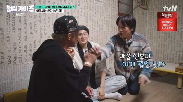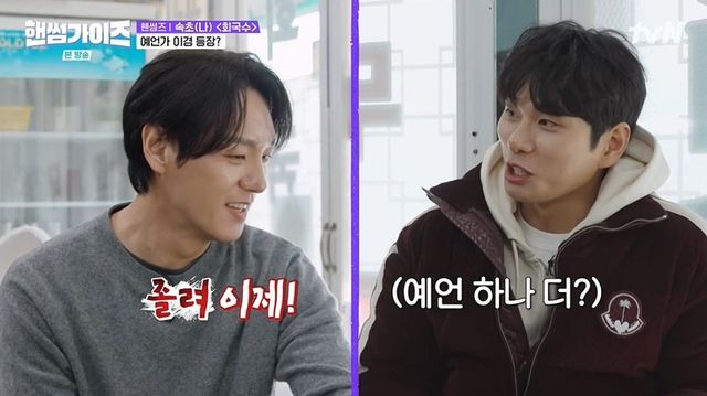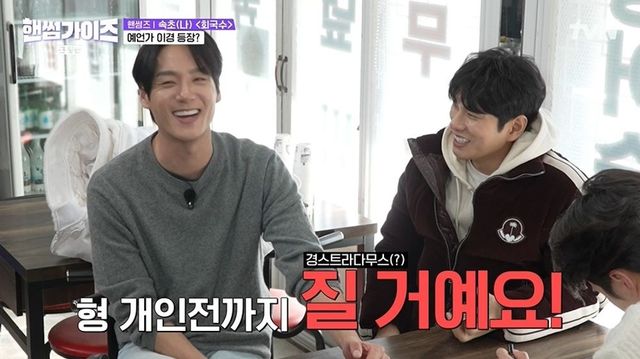 이날 회국수를 먹으러 간 핸썸 팀(이이경, 신승호, 곽시양). 대식가인 신승호는 하나만 시키자고 나섰고, 소식가인 이이경은 “계속 먹어. 다 먹고 지면 되지”라고 했다. 이에 곽시양은 “왜 질 생각하냐. 이길 수도 있지”라고 말하기도.