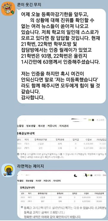 지난 21일 등록 신청은 마감한 A의대 재학생들의 카카오톡 대화방에선 올해 1학기 등록금 미납 실명 인증을 요구, 논란이 일었다. 교육부는 이를 학생들의 복귀를 방해했다고 보고 경찰에 수사를 의뢰한 것이다.