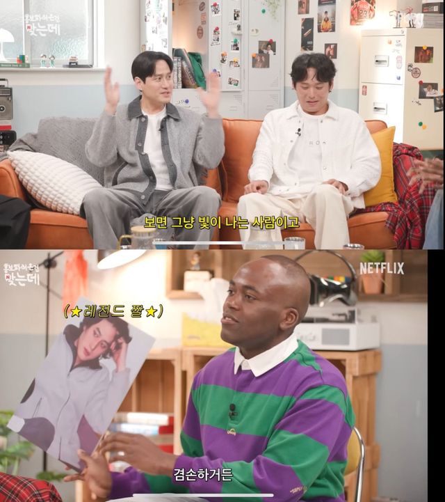 어린 시절도 공개됐다. “별명이 이태리 조각상” “한예진 장동건”이라는 칭찬에 “동건 선배는 그냥 보기만 해도 빛이 나는 선배다. 나는 그냥 왔다 갔다 하는 사람”이라고 겸손하게 답했다. 이에 유병재는 “원래 잘생긴 사람은 자기가 잘생긴 줄 몰라”라고 맞받아쳤다.