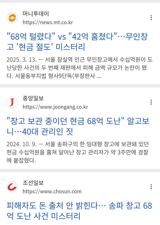 창고에 보관하고 있던 현금 68억원 도난 사건