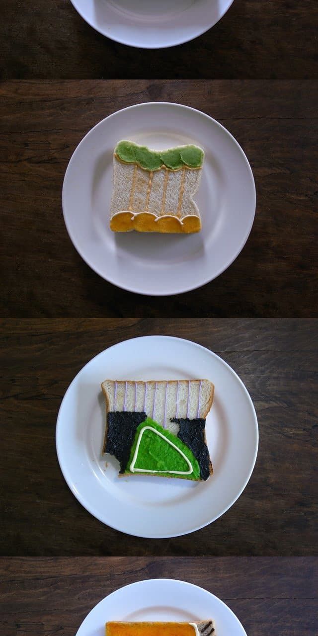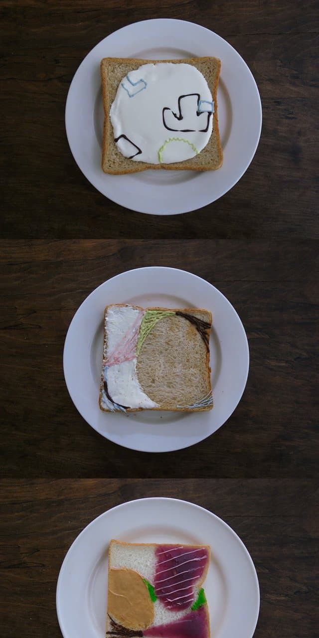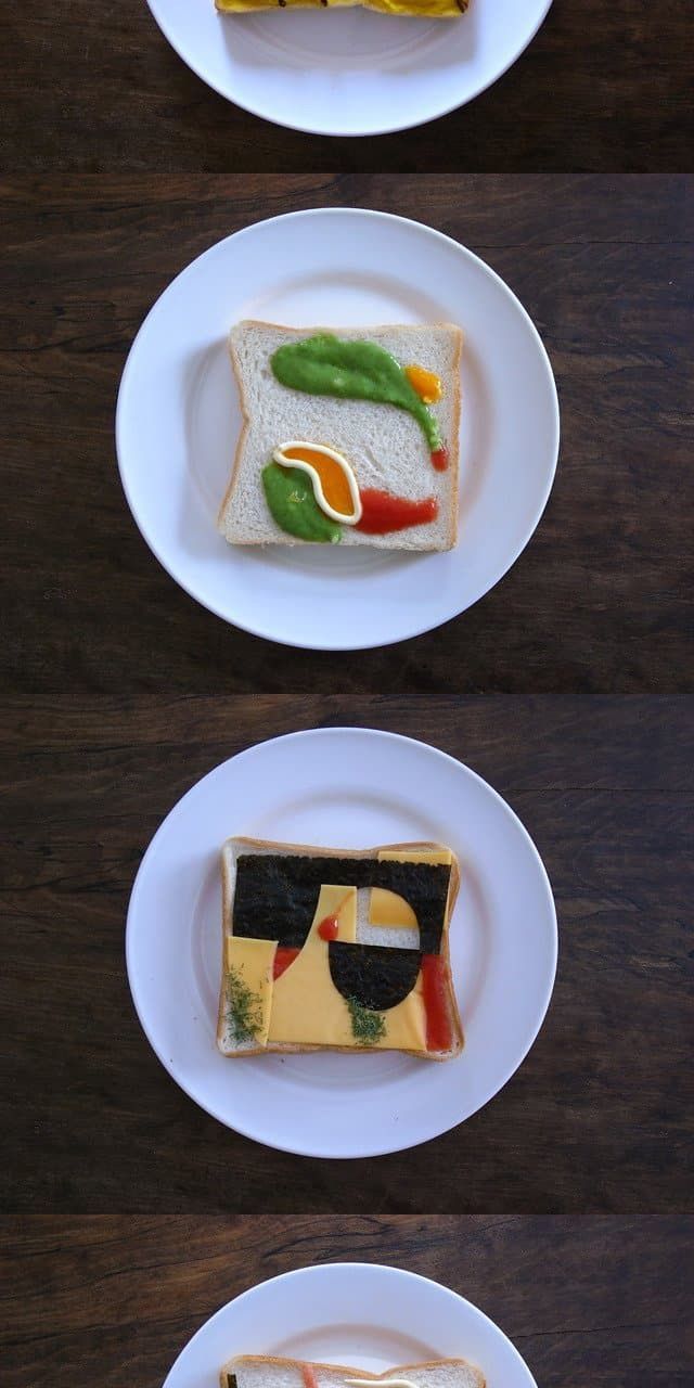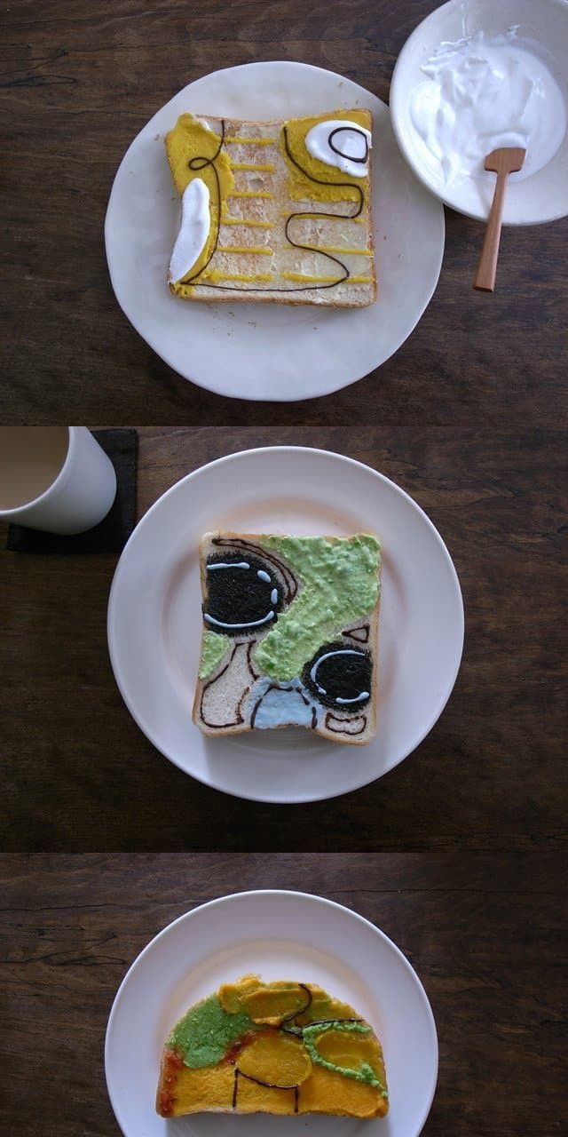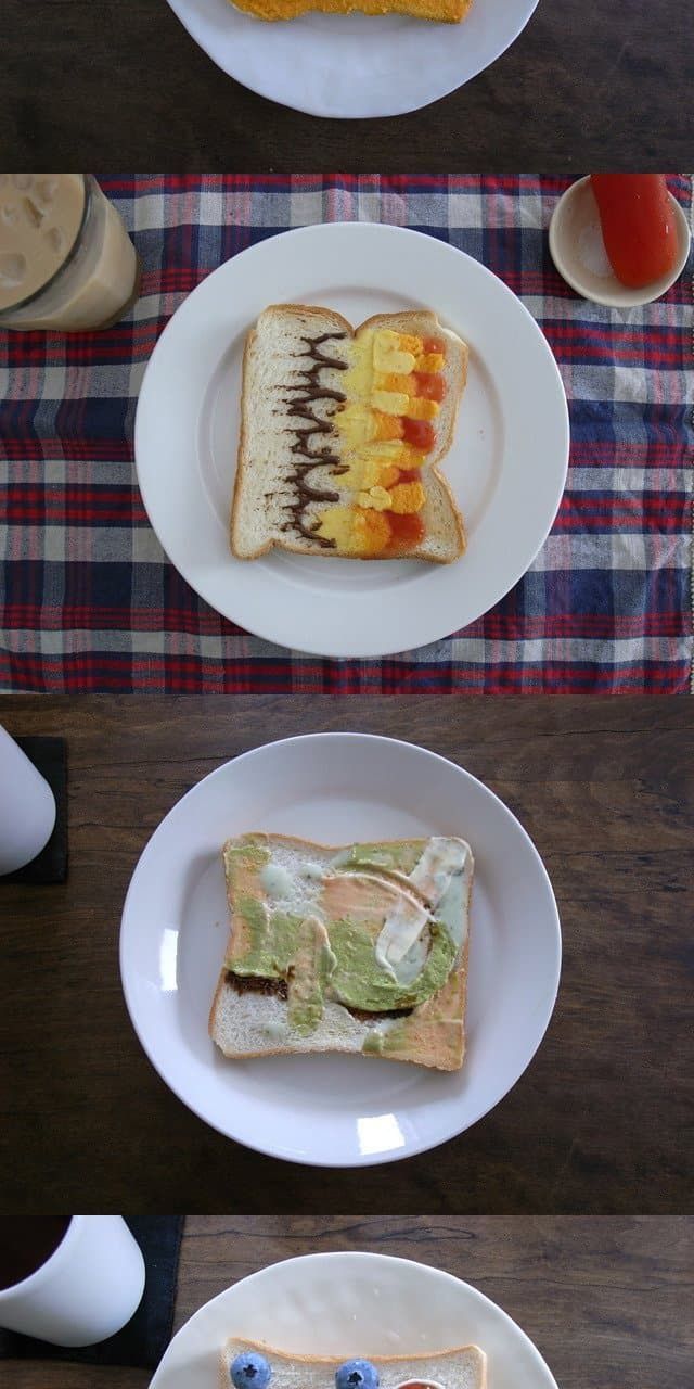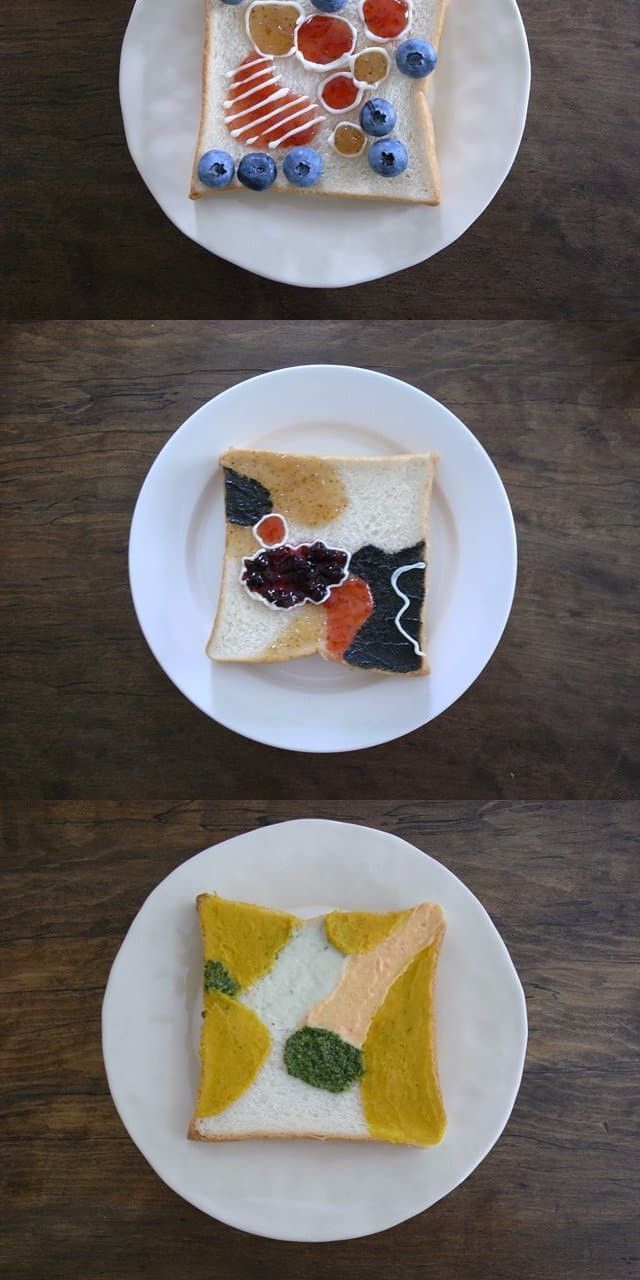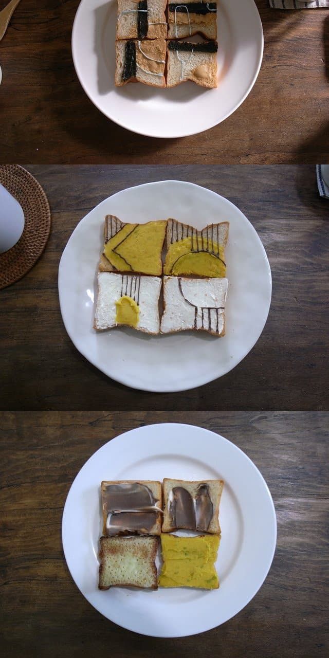 식빵에 그림을 그릴 때 잼이나 페이스트 등 다른 식재료를 사용해서