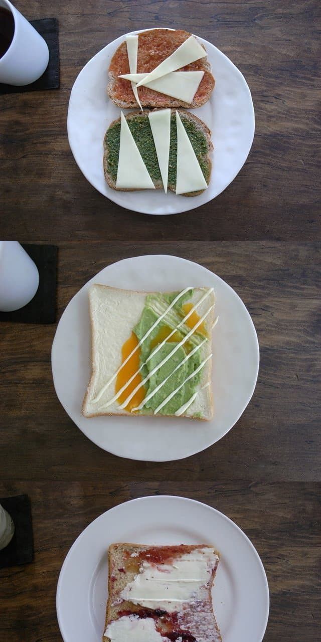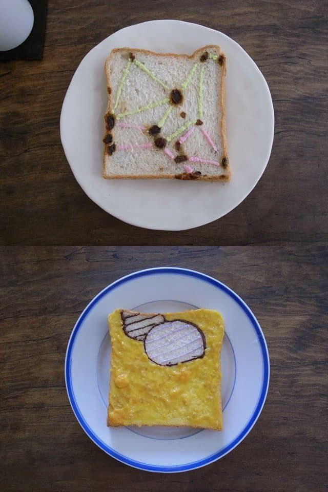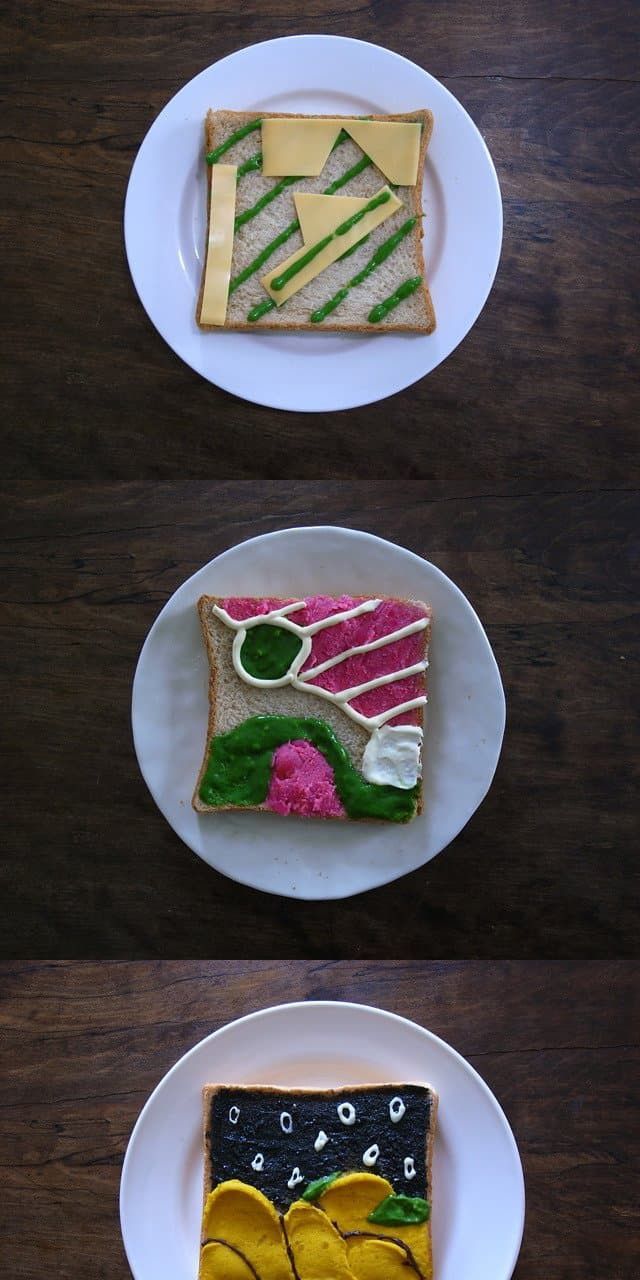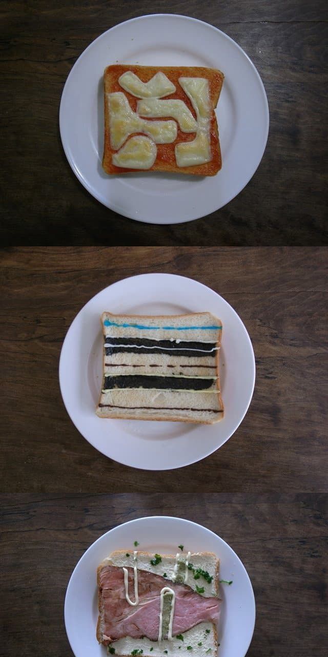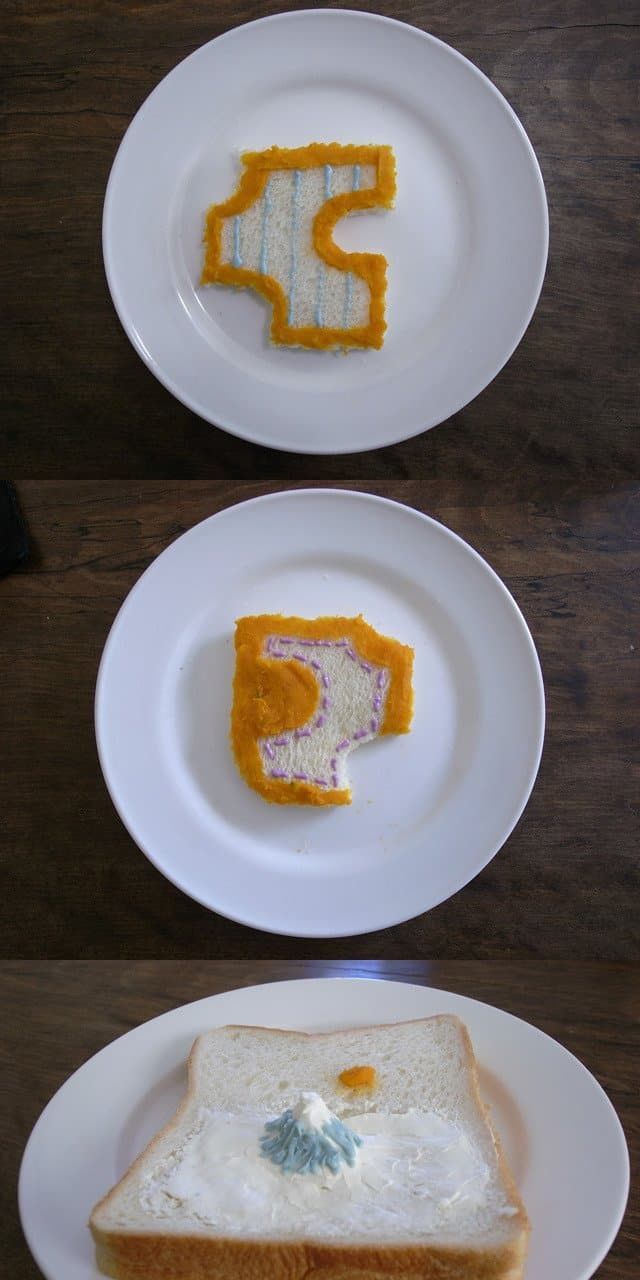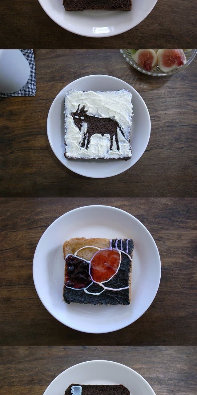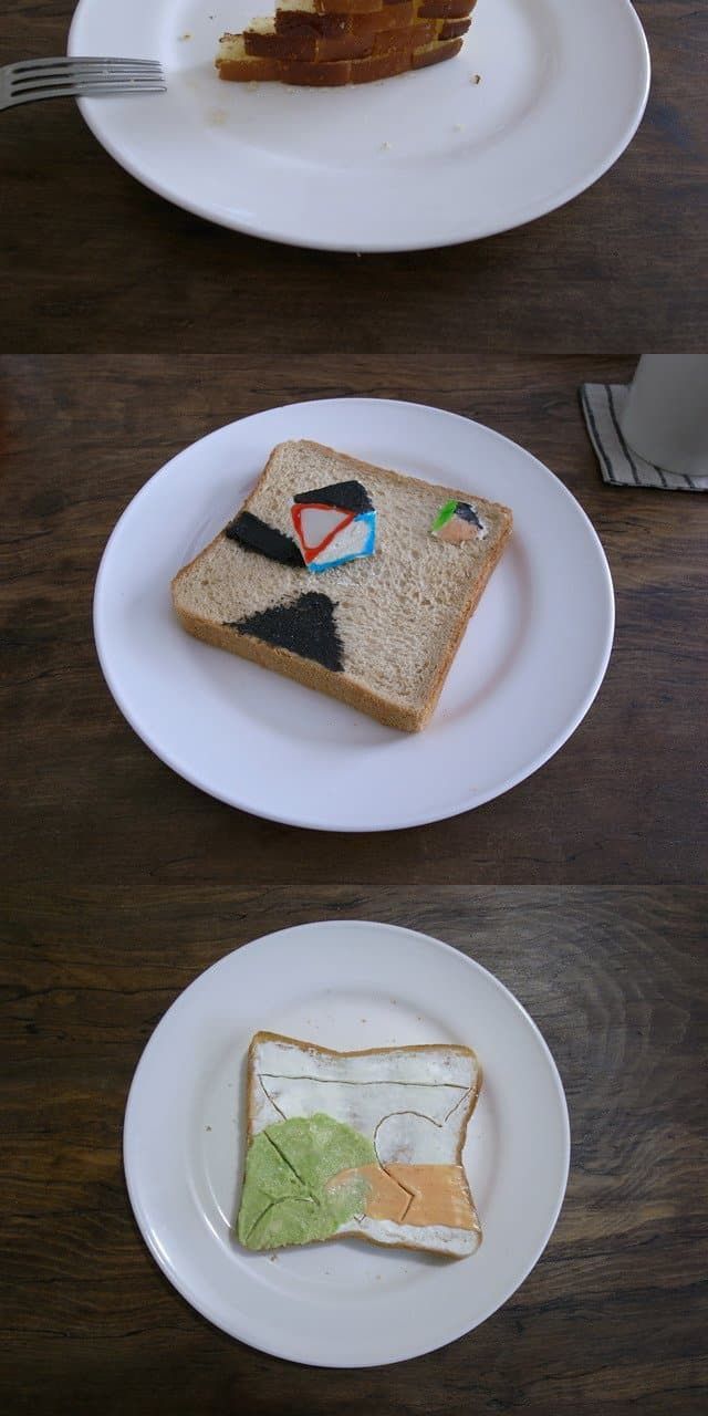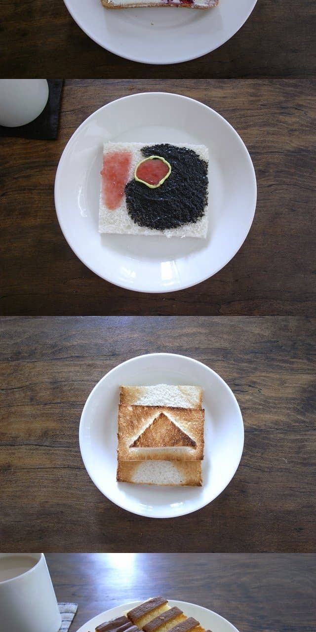 식빵에 그림을 그릴 때 잼이나 페이스트 등 다른 식재료를 사용해서