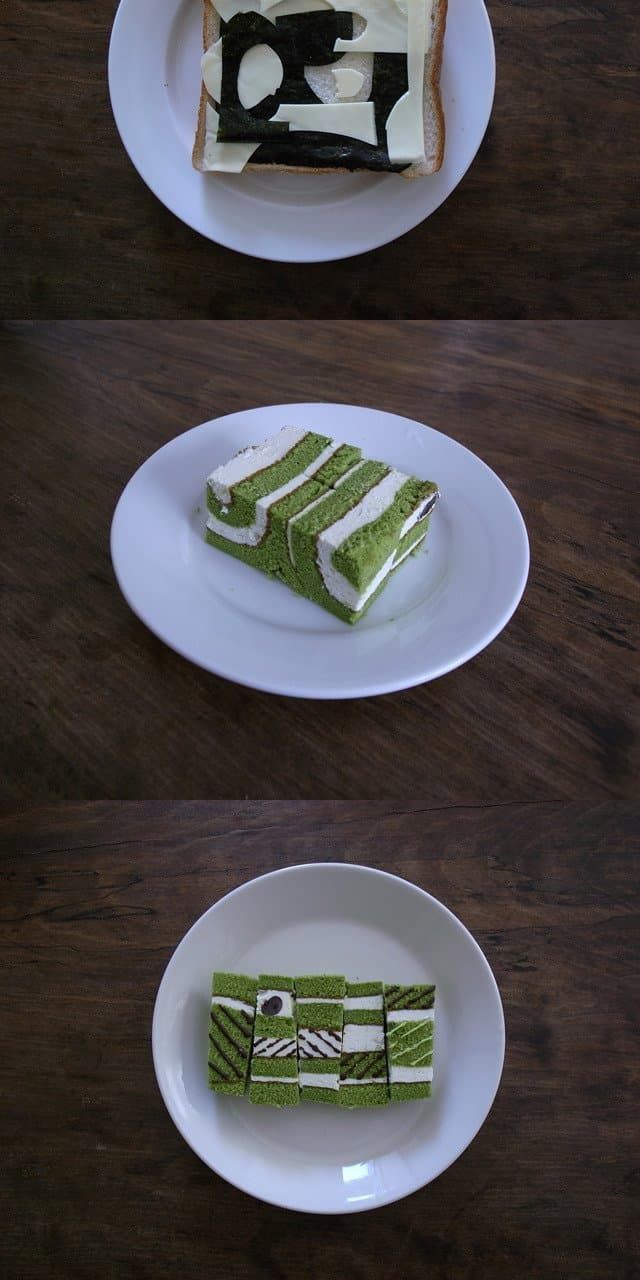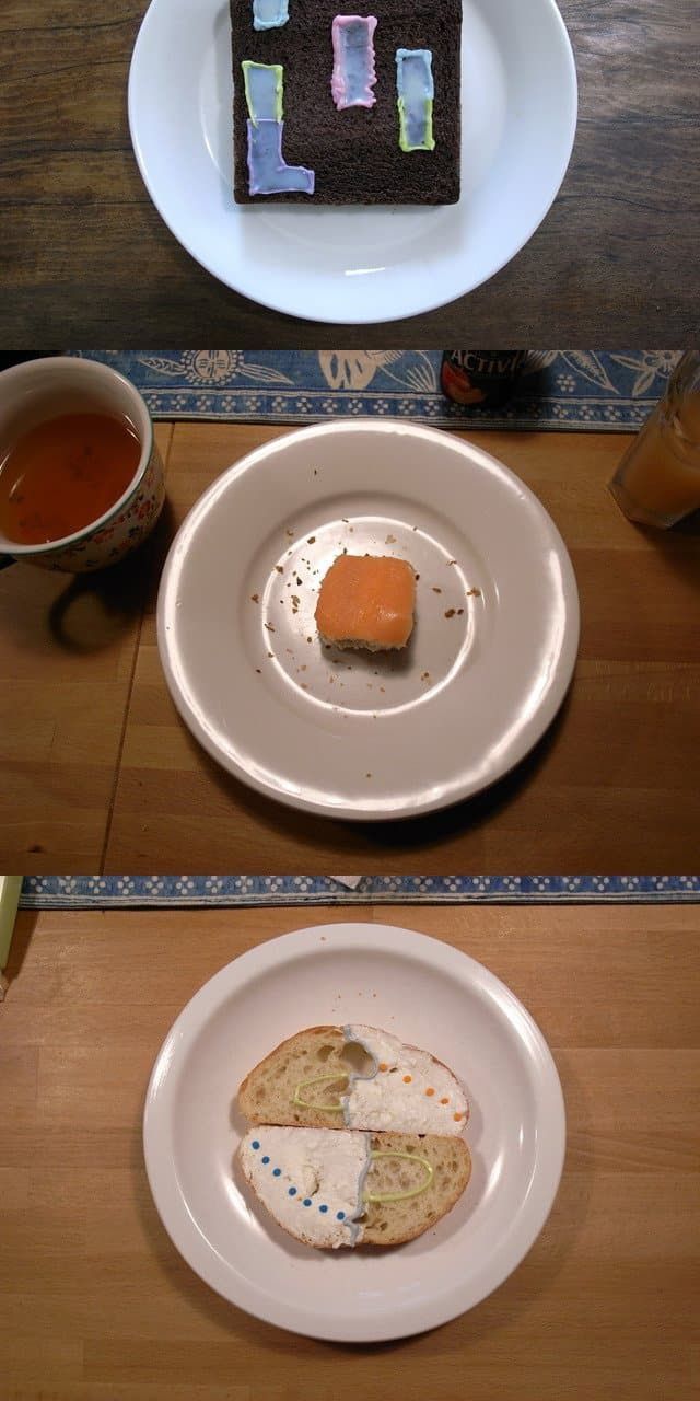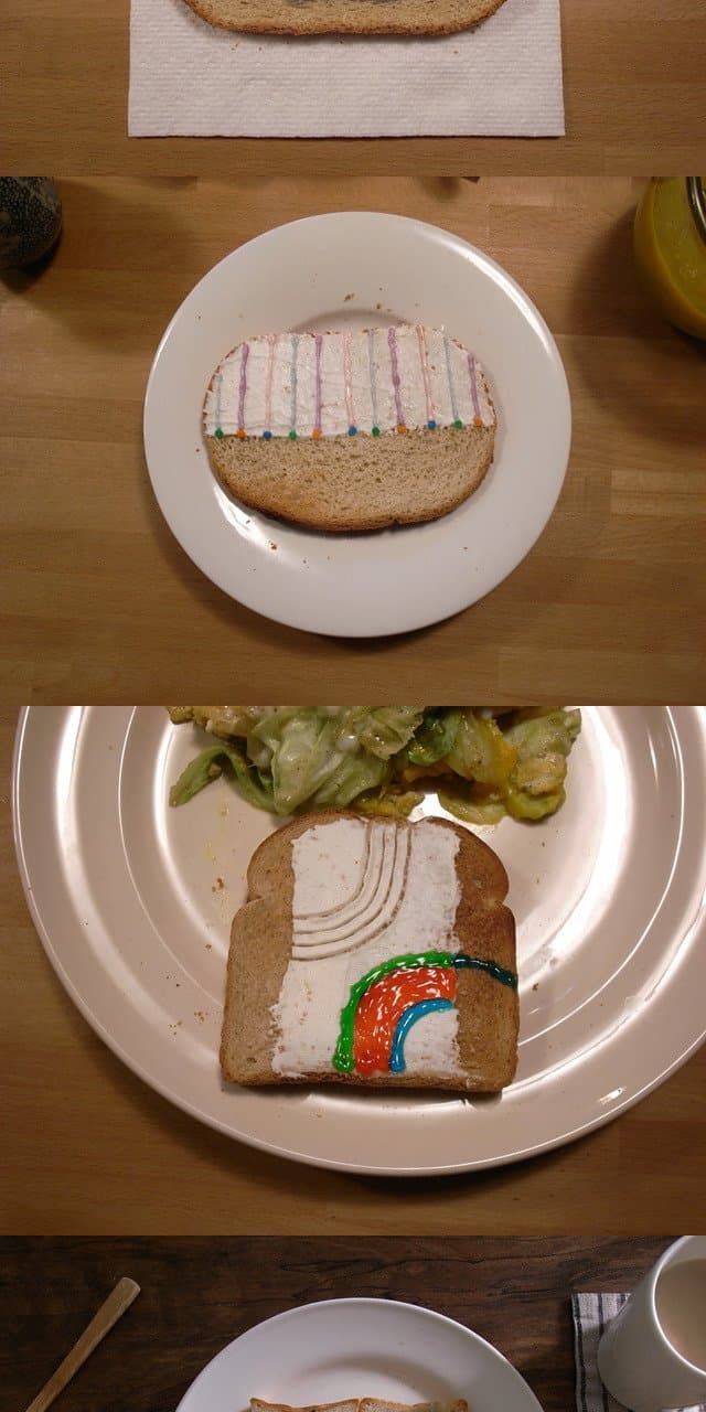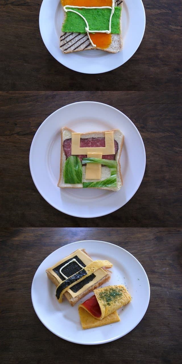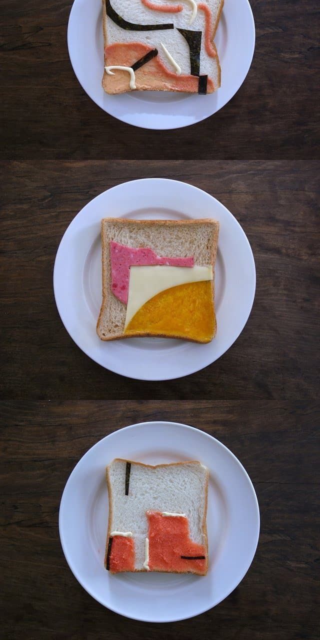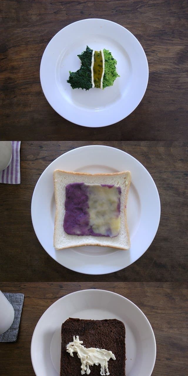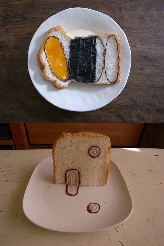 식빵에 그림을 그릴 때 잼이나 페이스트 등 다른 식재료를 사용해서