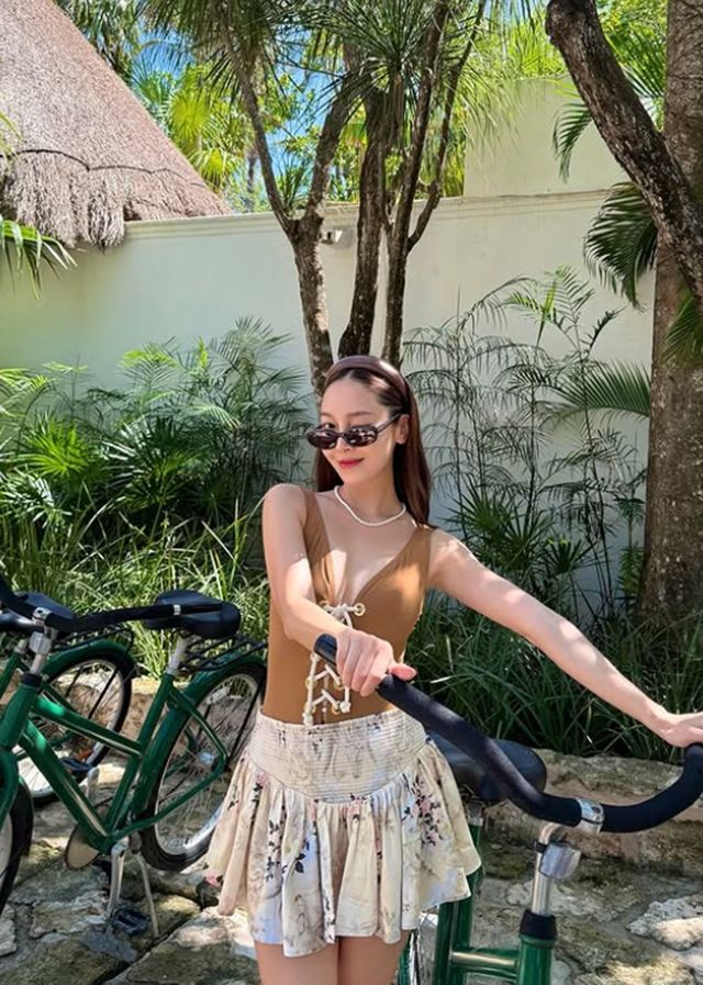 공개된 사진에는 휴가를 즐기고 있는 제시카의 모습이 담겨있다. 제시카는 브라탑 상의에 검은색 슬랙스를 착용해 눈길을 끈다.