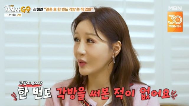 한번도 각방을 써본 적 없다는 김혜연은 “지금은 각방을 쓰고 싶긴 한데, 방이 모자라서 못 쓴다”고 했다. 마지막 키스를 묻자 김혜연은 “아니다. 저희는 가족끼리 스킨십이 자연스럽다. 어머니가 계시는데도 절 무릎에 앉힌다”며 사랑 가득한 집안 풍경에 대해 말했다.