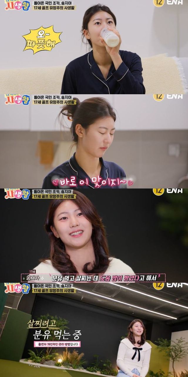 지아는 “분유 먹고 인생 최고 몸무게를 달성했다. 골프할때 마른 몸은 비거리도 안나가고, 체력적으로 좋지 않다”며 “현재는 건강하고 무게있고 골프를 잘 치고 있다”고 전했다.