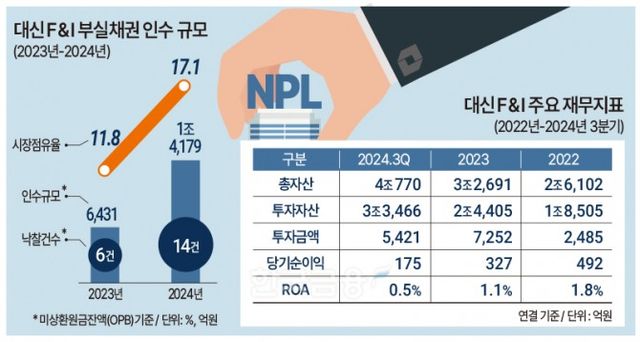 지난 2023년 NPL 규모 확대에 힘입어 대신에프앤아이는 본업인 NPL 투자에 다시금 집중하기 시작했다.
