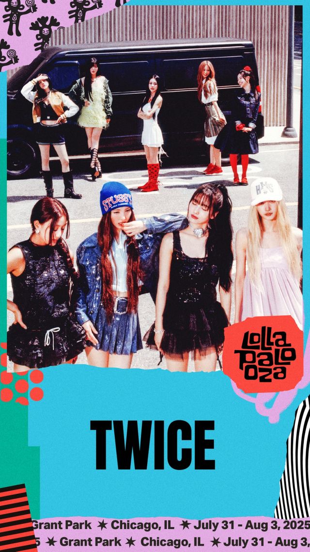 트와이스는 오는 8월 2일(현지시간) 미국 일리노이주 시카고 그랜트 파크에서 개최되는 대형 뮤직 페스티벌 ‘롤라팔루자 시카고’ 헤드라이너로 낙점됐다. 롤라팔루자는 1991년 미국 시카고에서 시작된 음악 축제로 하루 평균 11만 5000여 명이 모이는 현지 대표 페스티벌이다. 올해 ‘롤라팔루자 시카고’에는 이들을 비롯해 엑스디너리 히어로즈, 보이넥스트도어, 캣츠아이, 킥플립 등 다수의 K팝 가수들이 출연하는데 트와이스는 헤드라이너로 당당히 이름을 올리며 올리비아 로드리고, 타일러 더 크리에이터, 사브리나 카펜터, 뤼퓌스 두 솔, 루크 콤즈, 에이셉 라키, 도이치 등과 어깨를 나란히 하게 됐다.