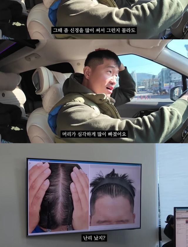 탈모 병원을 방문했을 당시의 상황에 대해 그는 "정말 심각했다"며 "유튜브 촬영할 때 가루 뿌리는 거도 뿌렸다. 그래서 강아지들 '엎드려' 시킬 때 되게 신경 쓰였다. 엎드리면 나도 허리를 숙여야 되는데 여기(정수리)가 비칠까봐"라고 고백했다.