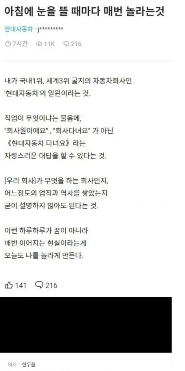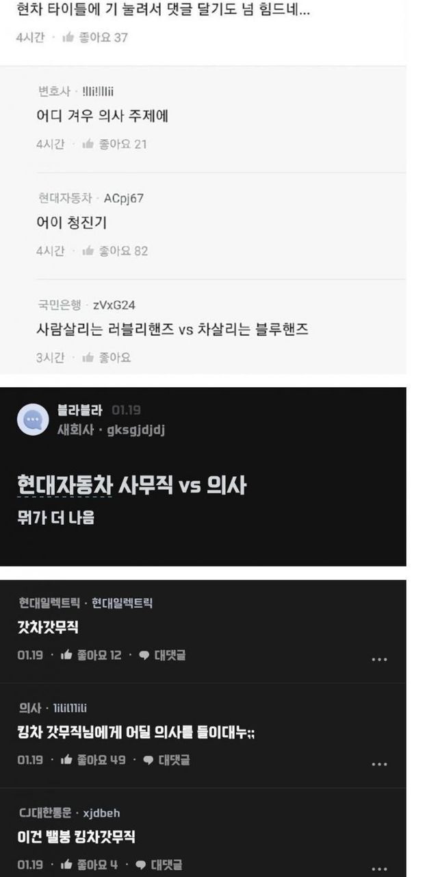 심지어 의사가 댓글을 달자, 또 다른 현대차 근로자는 “어이, 청진기”라며 의사를 비하하는 글을 올려 논란이 된 바 있다.