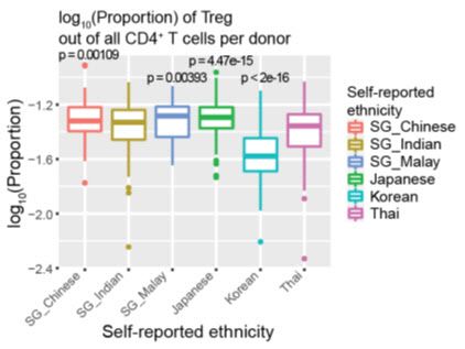다른 나라에서는 일본인과 싱가포르의 중국인에서 면역세포 구성이 전체 평균에 가까운 균형 상태였고, 싱가포르의 말레이인은 B세포가 많이 관찰됐다. 인도계는 NK세포가 상대적으로 낮았고, 태국인은 골수계 세포가 낮은 것으로 밝혀졌다.