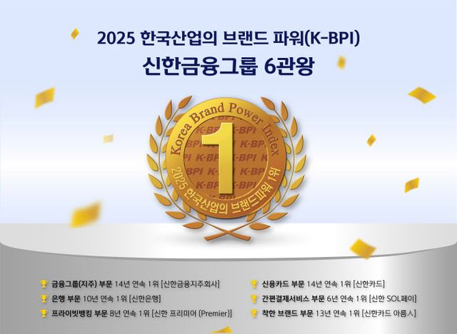 [이데일리 김나경 기자] 신한금융그룹이 24일 한국능률협회컨설팅(KMAC)에서 주관하는 ‘2025 한국산업의 브랜드 파워(K-BPI)’ 조사에서 신한금융지주회사, 신한은행, 신한카드가 총 6개 분야에서 1위 브랜드로 선정됐다.