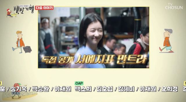 23일 방송된 TV조선 ‘식객 허영만의 백반기행’에는 성우 안지환과 그의 딸 안예인이 출연했다. 두 사람이 출연한 방송이 끝난 후 예고편에는 다음 게스트인 서예지가 등장했다.