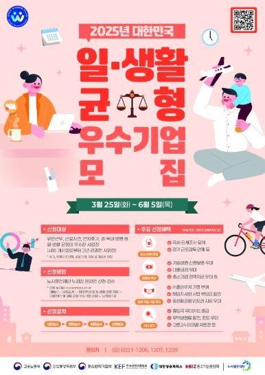 [와이뉴스] 고용노동부는 산업통상자원부, 중소벤처기업부, 한국경영자총협회, 대한상공회의소, 중소기업중앙회와 함께 「대한민국 일・생활 균형 우수기업」을 3월 25일부터 모집한다고 밝혔다.