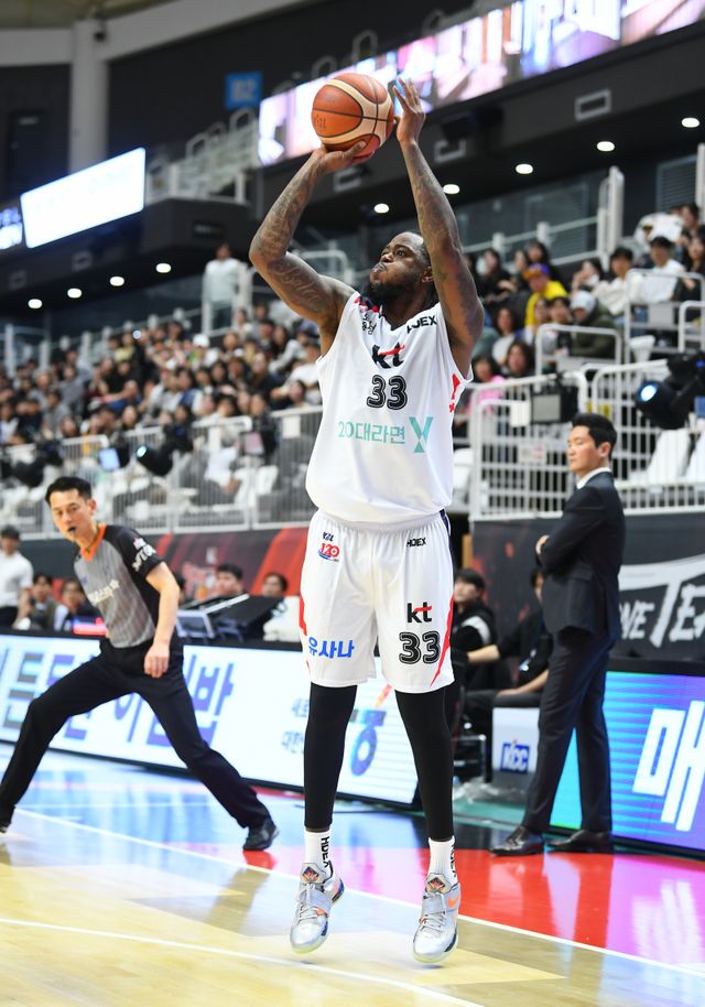 KT는 24일 서울 잠실실내체육관에서 열리는 2024~25 프로농구 정규리그 원정 경기서 서울 삼성과 만난다. KT는 갈 길이 바쁘다. 23일 기준 정규리그 28승 19패로 3위인 KT는 2위 창원 LG를 1.5경기 차로 쫓고 있다. 4위 울산 현대모비스와 승차도 반 경기에 불과하다. 4강 플레이오프(PO) 직행이 걸린 만큼 2위 탈환에 사활을 걸고 있다.