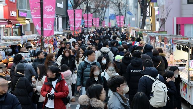 다양한 길거리 간식을 맛볼 수 있는 한국의 명동 거리 자료 사진 / 뉴스1