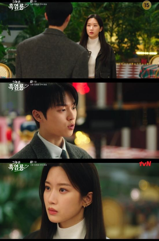 24일 방송된 tvN 월화드라마 '그놈은 흑염룡' 11회에서는 백수정(문가영 분)이 반주연(최현욱)이 자신을 위해 정효선(반효정)과 거래한 사실을 알게 된 모습이 그려졌다.