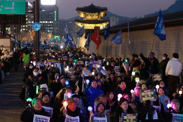 또 다른 시민 변현준 씨도 "국회를 압박해 탄핵소추안을 가결시켰고 검경을 압박해 윤석열을 체포했다. 그때쯤 저는 안도의 한숨을 내쉬며 작은 고양감에 빠진 것 같다"며 "안도가 빨랐나 보다. 윤석열이 풀려나더니 탄핵 선고기일은 한도 끝도 없이 밀려나고 있다. 국무총리라는 자가 내란에 가담했는데, 대통령 권한대행이 위헌을 저질렀는데도 헌재가 용서해 줬다. 이 비상식의 세를 뻗어나가게 둘 수 없다. 다시 신발 끈을 조여 매고 광화문에 모이자"고 시민들을 독려했다.