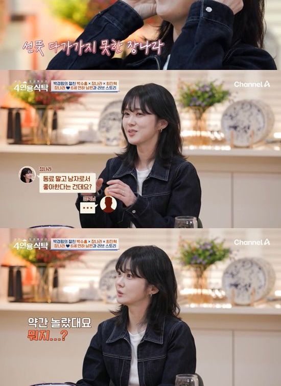 24일 방송된 채널A '절친 토큐멘터리 - 4인용 식탁'에서는 방송인 겸 배우 박경림이 게스트로 나서 박수홍, 장나라, 최진혁을 초대하는 모습이 그려졌다.