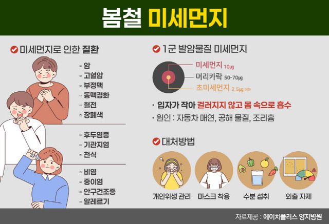 에이치플러스 양지병원 호흡기내과 조은영 전문의는 “미세먼지 속 철, 카드뮴 등의 중금속이 호흡기를 통해 폐로 침투해 심혈관 질환을 유발할 수 있다”며 “미세먼지 농도가 높은 날에는 건강 관리에 더욱 주의해야 한다”고 강조했다.