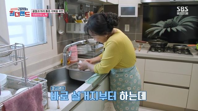 25일 저녁 SBS ‘김원희의 원더랜드’에서는 황혼 육아와 집안일로 뼈가 부서질까봐 걱정돼서 나온 의뢰인 안미란(65) 씨가 출연했다.
