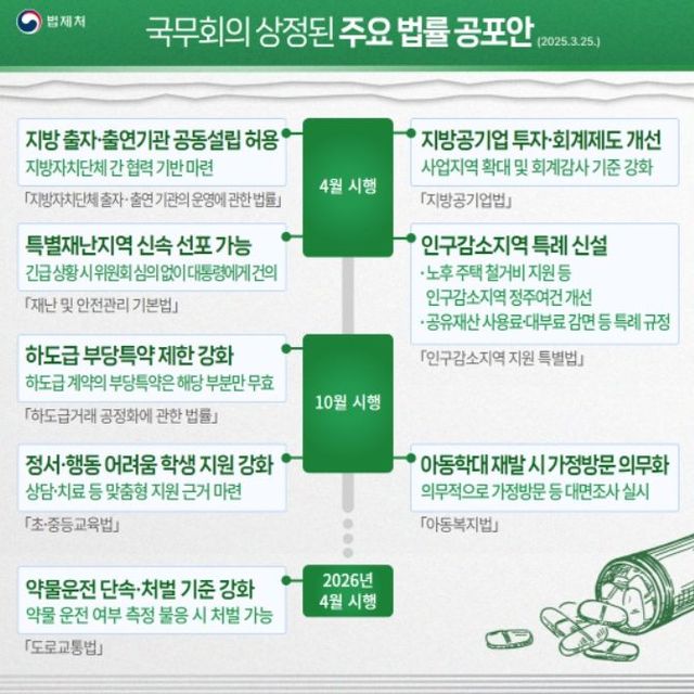 [와이뉴스] 법제처는 3월 13일 국회를 통과한 41개의 법률 공포안이 3월 25일 국무회의에 상정됐다고 밝혔다.