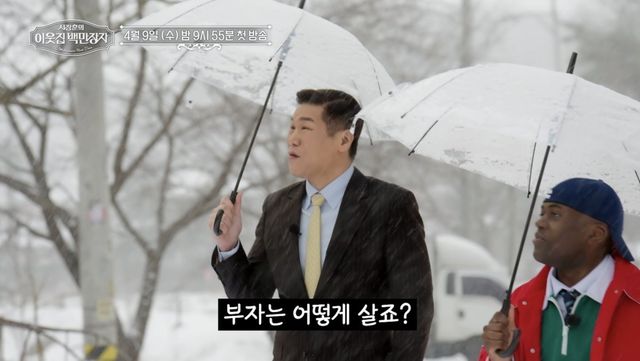 이번에 공개된 예고 영상에는 부자의 비밀을 파헤치기 위해 의지를 불태우는 서장훈과 조나단의 모습이 담겼다. 부자의 집을 찾은 서장훈, 조나단은 어마어마한 대저택의 위용에 “집이 이렇다고?”라며 입장부터 압도된 모습을 보였다. 또 상상을 초월하는 부자의 옷장과 소장품을 살펴보며 “집에 저런 게 있어?”, “아파트값일 것 같은데…”라며 경악을 금치 못했다.