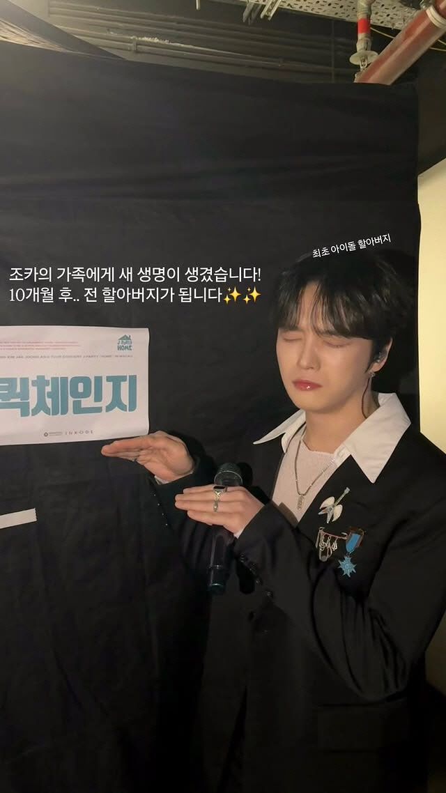 김재중은 “10개월 후 저는 할아버지가 된다”며 “최초 아이돌 할아버지”라고 덧붙여 눈길을 끈다.