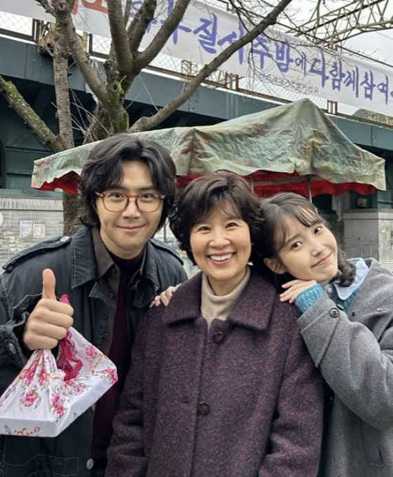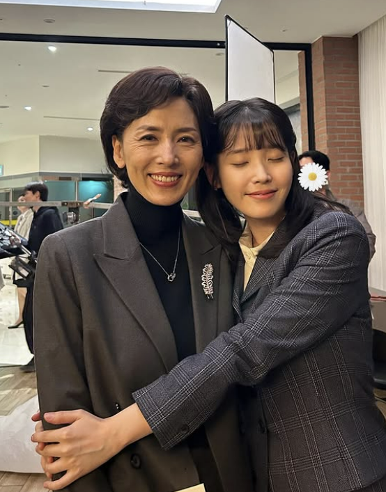 무엇보다 극중 시청자의 혈압을 높인 빌런들과의 인증샷도 눈길을 끌었다. 중년 관식을 연기한 박해준 옆에 선 아이유는 ‘학씨 아저씨’ 부상길 역 최대훈을 째려보는가 하면, 금명 역으로 맹렬히 대립했던 영범의 모친 역 배우 故강명주와 포옹해 애틋함을 자아냈다. 고 강명주는 지난달 27일 지병인 암 투병 중 세상을 떠나 ‘폭싹 속았수다’가 유작이 됐다.