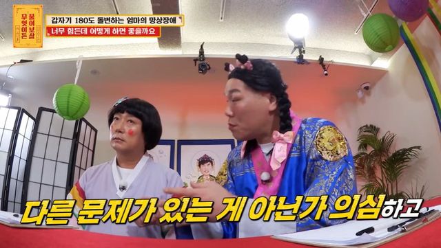 이수근도 "정밀 검사를 받으면 나쁠 거 없다"고 덧붙였고, 서장훈은 사연자가 오빠 두 명이 있다는 사실에 "엄마가 약을 먹어도 호전이 안 되면 다른 문제가 아닌가 검사도 해보고 여러 가지를 해봤을 텐데 10년을 같은 약을 드시고...그걸 보는 게 슬퍼서 그런 거 아니냐"며 답답함을 표했다.