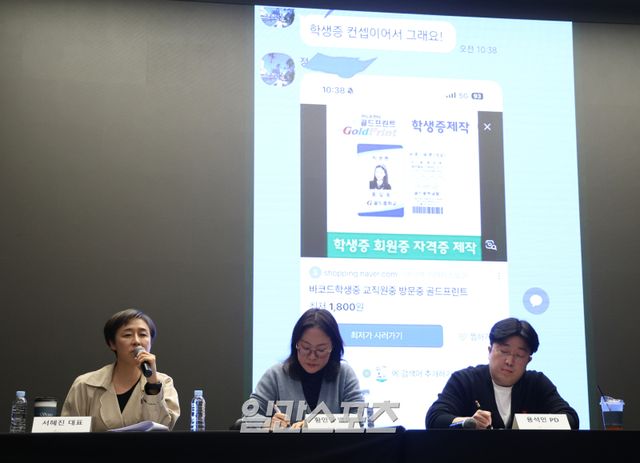 서 대표는 이어 문제가 된 바코드 디자인 지원자 프로필에 대해 “엄청난 오해가 있다”며 카톡을 공개했다. 이 카톡에는 학생증 사진이 담긴 링크와 채팅 참여자가 “학생증 콘셉트라 그래요”라고 디자인에 대해 설명하는 부분이 담겼다.