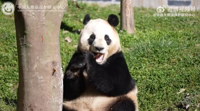 25일 자이언트 판다 푸바오가 중국 쓰촨성 청두의 판다 기지에서 중순을 먹고 있다. 사진출처 중국판다보호연구센터 웨이보