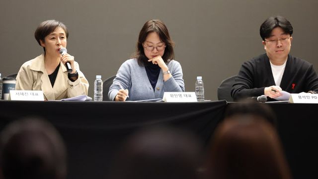 ‘언더피프틴’ 제작진이 25일 서울 상암 스탠포드호텔에서 진행된 MBN 새 예능 프로그램 ‘언더피프틴’ 긴급 제작보고회에서 아동 성상품화 논란을 부인하며 결국 눈물을 보였다. 자리에는 서혜진 크레아 스튜디오 대표, 황인영 크레아 스튜디오 대표, 용석인 PD가 참석했다. 이국용 PD는 건강상의 문제로 불참했다.