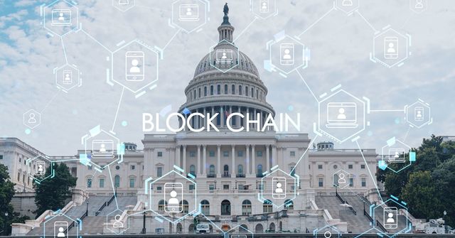 미국 국회의사당 중심부의 캐피톨 돔 및 블록체인 관련 이미지 / VideoFlow-shutterstock.com