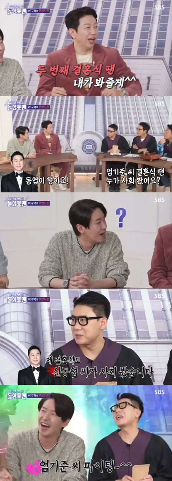 특히 '돌싱포맨' 멤버들은 엄기준의 결혼식 때 누가 사회를 봤는지 궁금해했고, 엄기준은 "동엽이 형이 사회를 봤다"고 말했다.